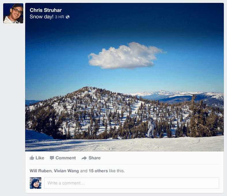 Het eerste wat opvalt, is de newsfeed. Deze is overzichtelijker, grotere foto’s en een cleaner design. Je zou kunnen zeggen dat het wat meer lijkt op Google+. Of dat in het geval van Facebook een compliment is, laat ik even in het midden.